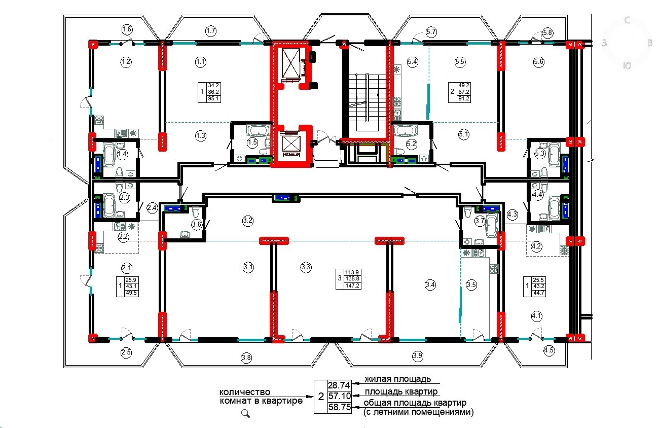 ПЛАНИРОВКИ. Секция 1 — 10й этаж